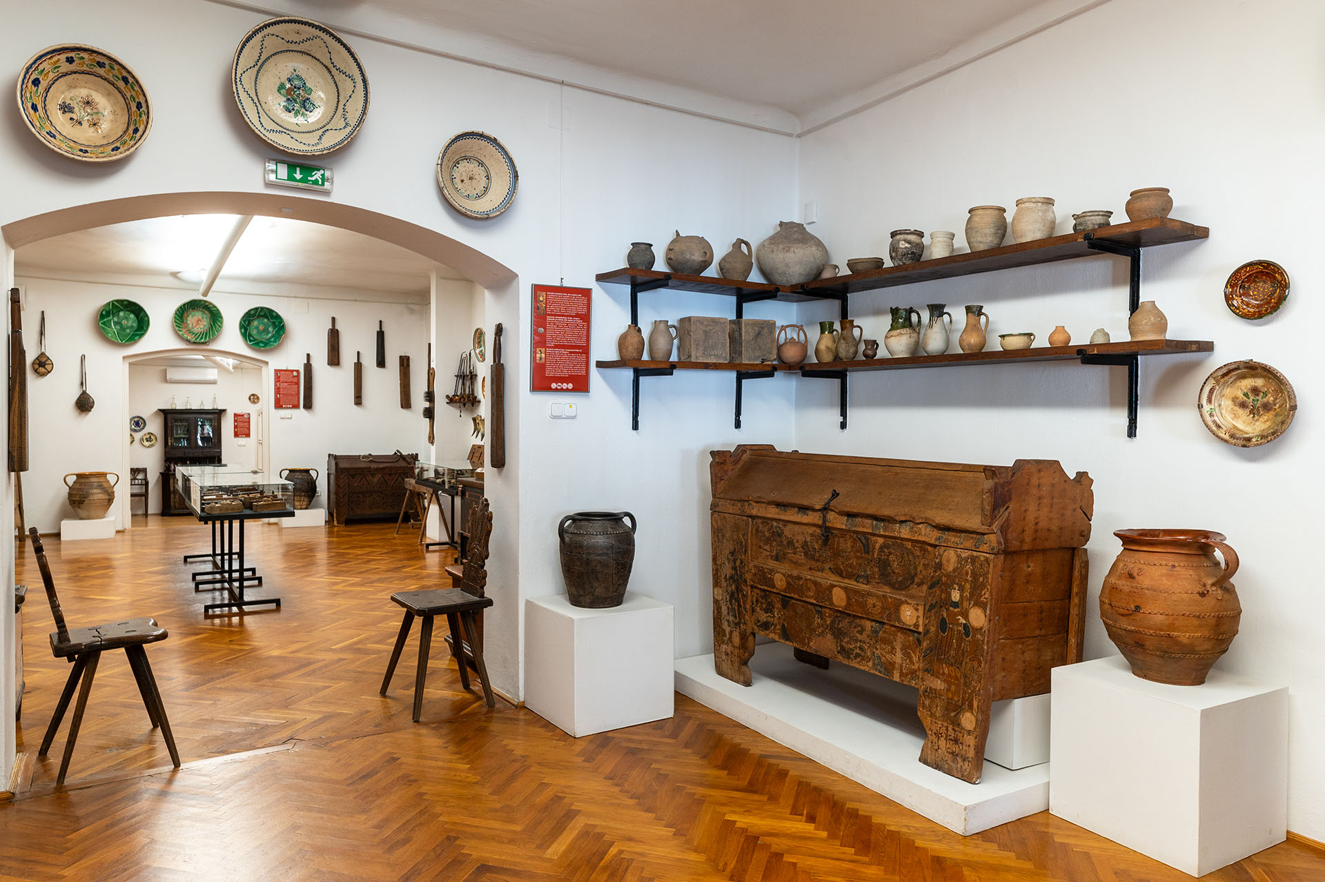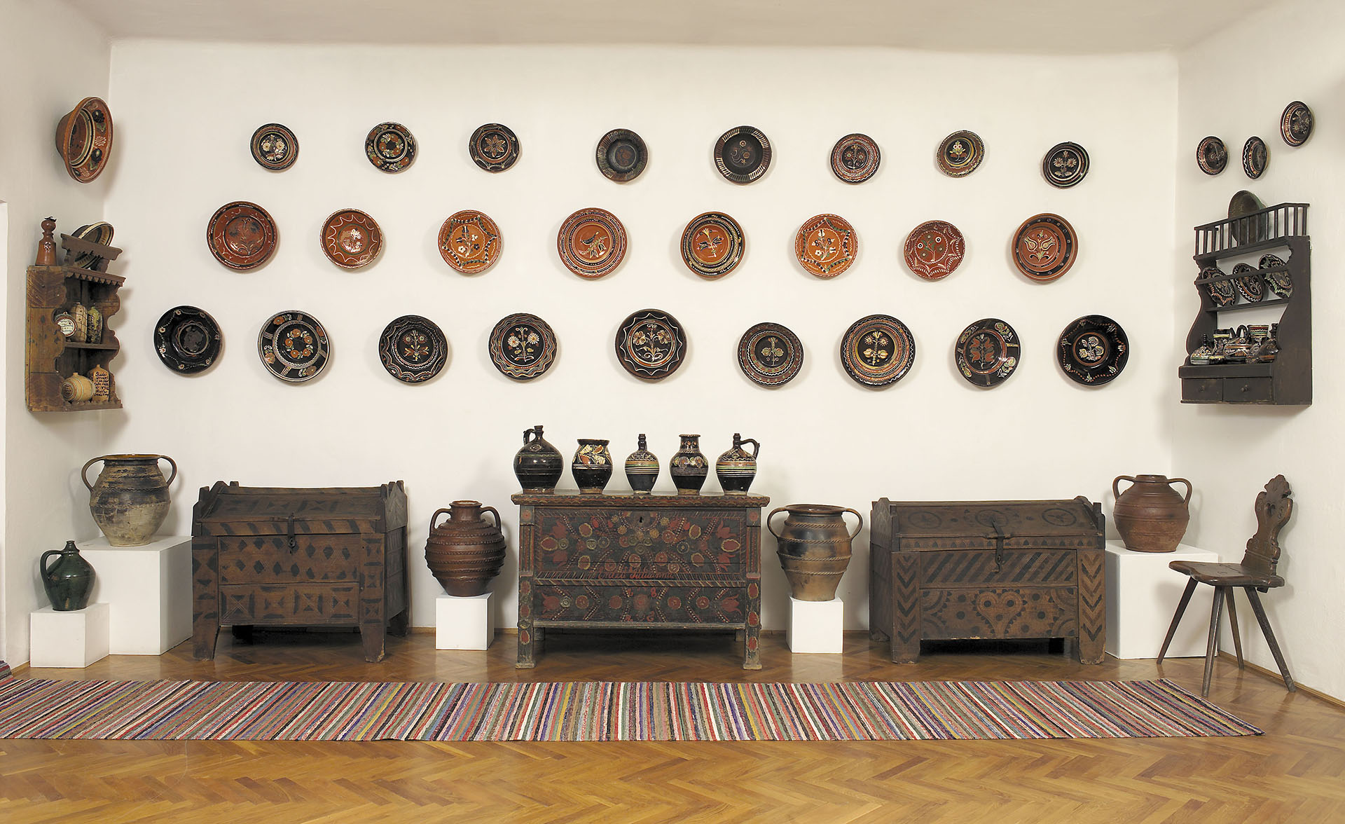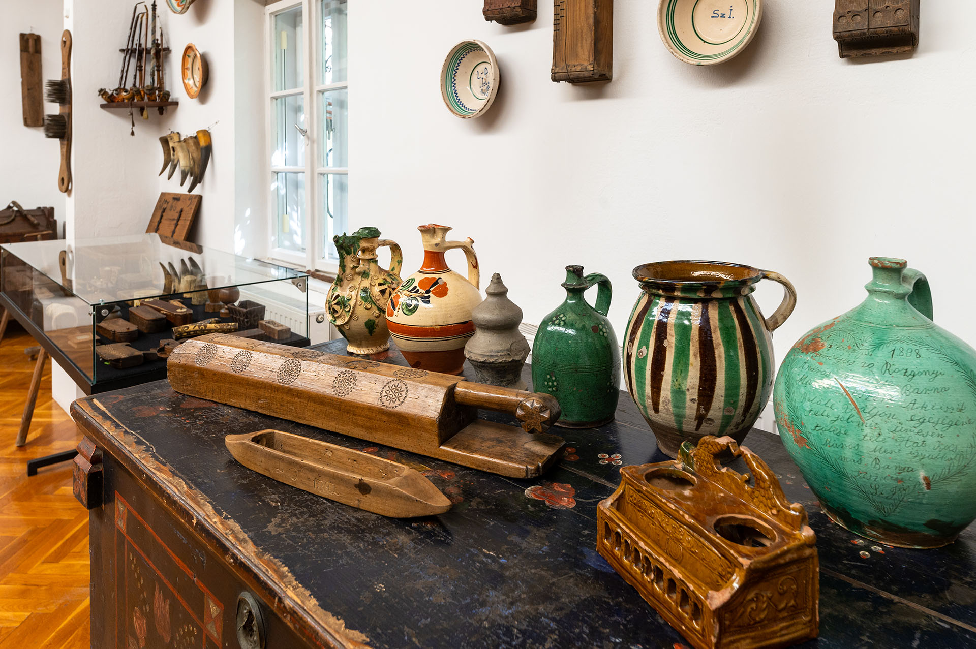 A 18. századi épületrészben helyezkedik el a gyűjtemény magja, a néprajzi gyűjtemény. Bozsó János első műterme is itt volt, ahová egy polcra sorakoztatta a csendéletekhez keresgélt tárgyakat, így lépett a műgyűjtés végetérhetetlen útjára. A gyűjtő legelső darabjai, a szívéhez közelálló tárgyak kaptak itt helyet. Sok használati tárgy még gyermekkorából volt ismerős. Egyre nagyobb csodálattal töltötték el a fafaragók keze által vésett motívumok, a kerámiaedények szép és praktikus formái. Minden szerzeménynek története volt, hogyan tett rá szert. A gazdag kiállításon szép számmal képviseltetik magukat a történeti Magyarország legnevezetesebb fazekasközpontjainak cserépedényei, a faragott borotvatokok, sulykok, mángorlók, a festett kelengyésládák.